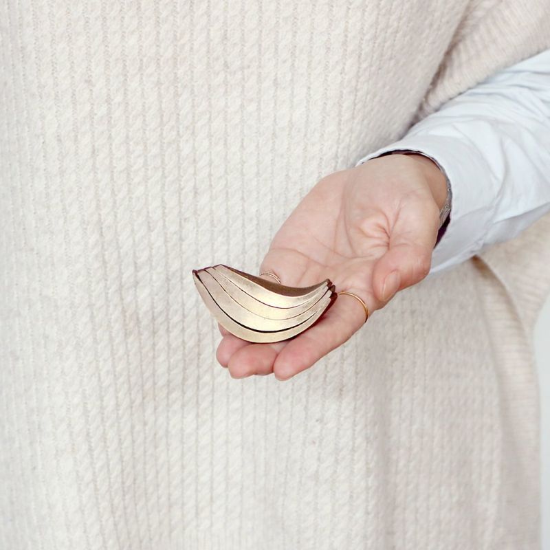野菜や果物、自然の造形物を真鍮に置き換え、日々の料理や食卓に上品なユーモアを運んでくれる【Cut piece】