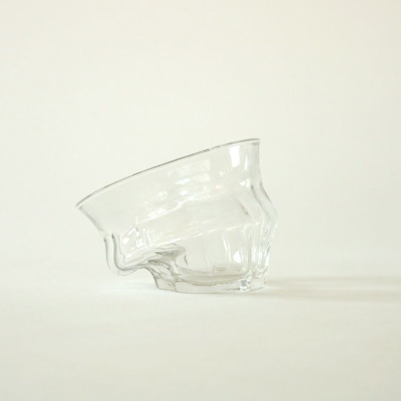 TIPSY GLASSの歪みは、ひとつひとつ異なります。大きくぐにゃりと歪んだもの、グラスとして通常利用できそうな酔いがマシなもの。普遍的で平凡とも言える、Picardie Originalガラスに個性を与えているところに面白みを感じる、アート作品のようなグラスです。
