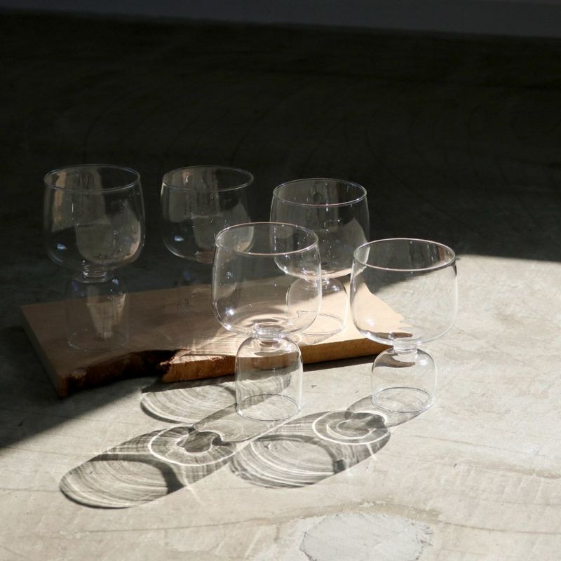 イタリアのミラノから入荷したユニークな形のグラス。「KOKESHI Wine stemmed glass」と「KOKESHI water stemmed glass」は、伝統的な日本のこけしからインスピレーションを受け、デザインされました。