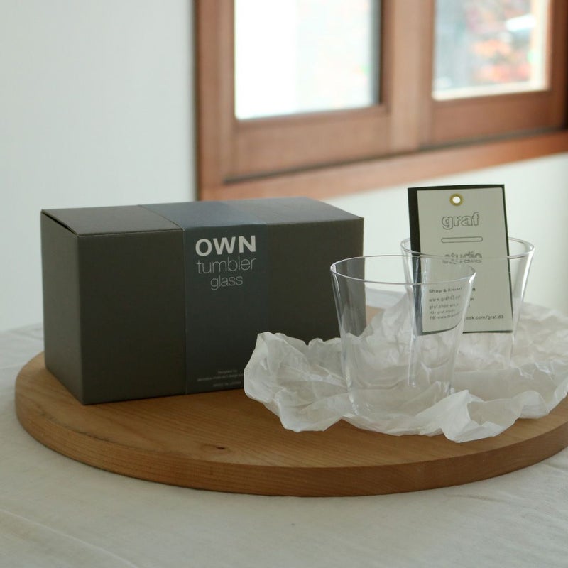 こちらは、専用のギフトボックスに、同じOWN thinglass tumbler を2個入れたギフトセットです。ご結婚祝いや新築祝いなど、ギフトにぴったりです。