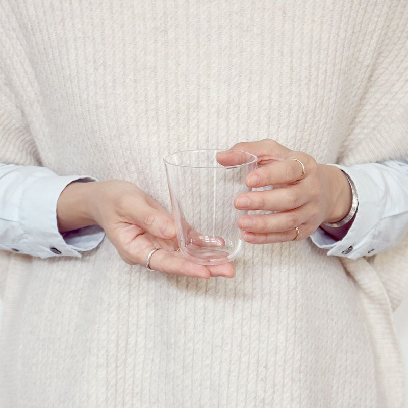 【おいしそうに見える・触れてみたくなる・いいさわり心地・味わうことを邪魔しない】という考えをベースに【飲み物が入って完成するグラス】をイメージしたgrafオリジナルのグラスです。容量は255mlと食事中にも使いやすいサイズ感です。