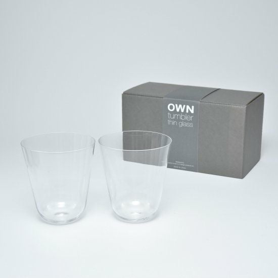 こちらは、専用のギフトボックスに、同じOWN thinglass tumbler を2個入れたギフトセットです。ご結婚祝いや新築祝いなど、ギフトにぴったりです。