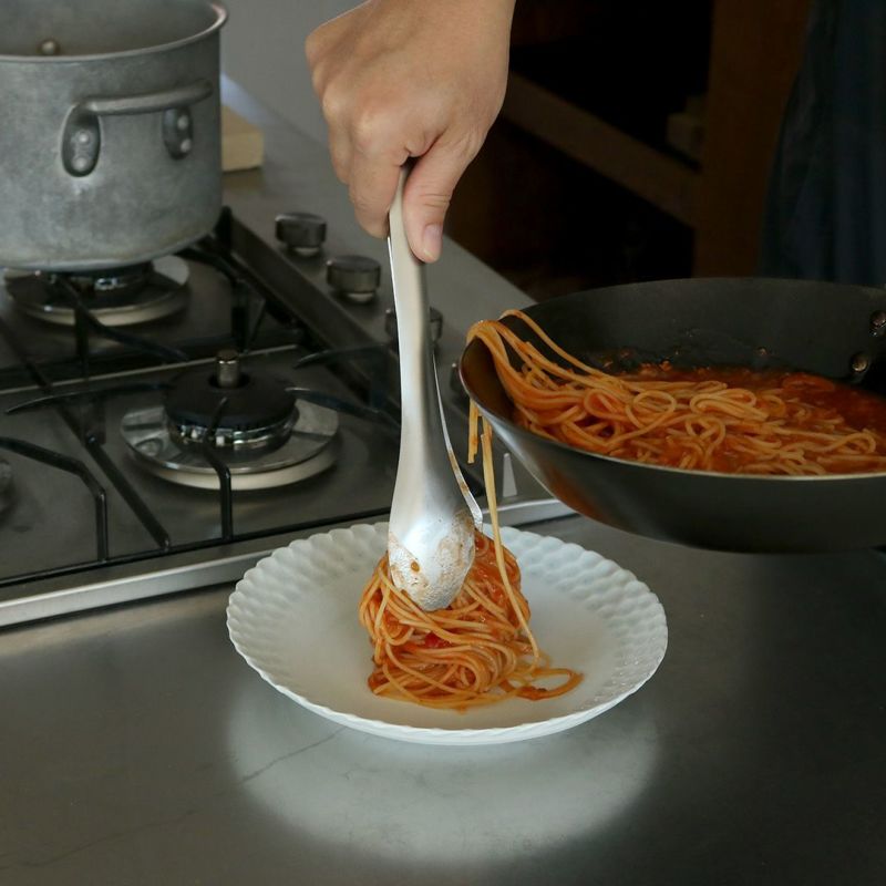 SUNAOのトングは、深いお鍋で調理する際に熱が避けられるように、通常のものよりやや長めになっています。
