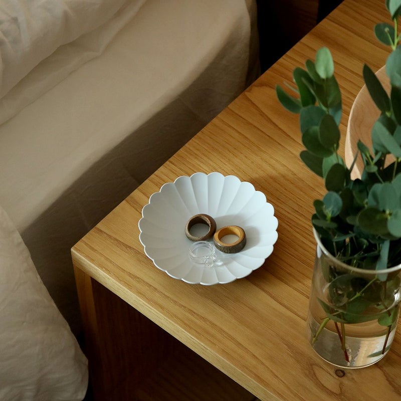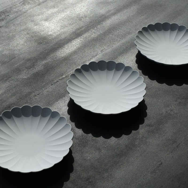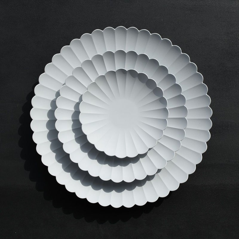 一見、洋食器のように見えますが、”輪花皿”とよばれる和食器のような雰囲気もあり、和洋限らず幅広いシーンでご使用いただけます。