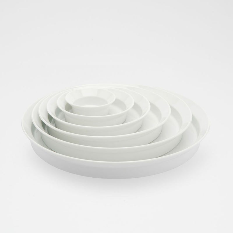 強度のある高密度の陶土を用いた上品なつやのある真っ白な器で、どんな料理も引き立ちます。