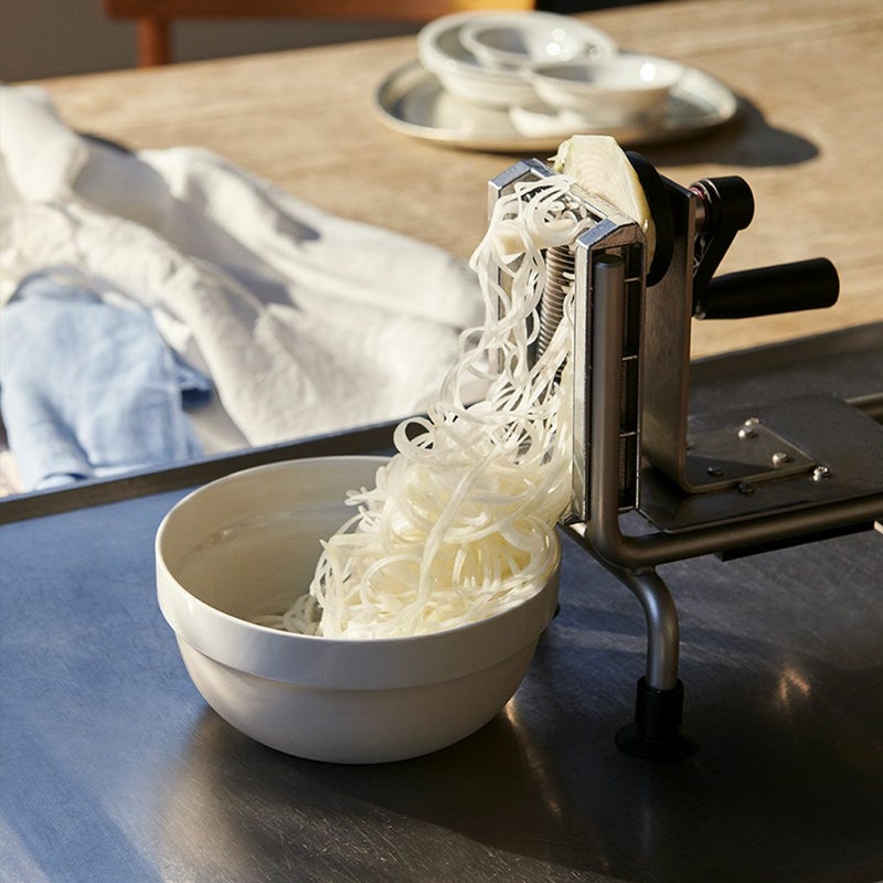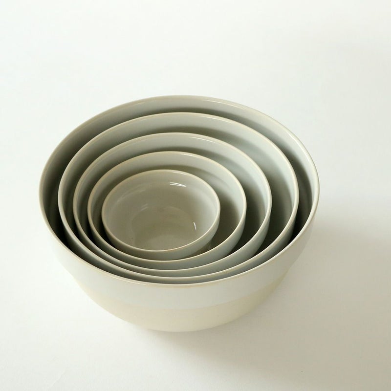 こちらはスタッキングができるシリーズのボウルです。ソースを入れるために使える小さなサイズから、ホームパーティで使えそうな大きなサイズまで、5種類の展開です。乗せる料理や用途によって使い分けられ、コーディネートも楽しめます。