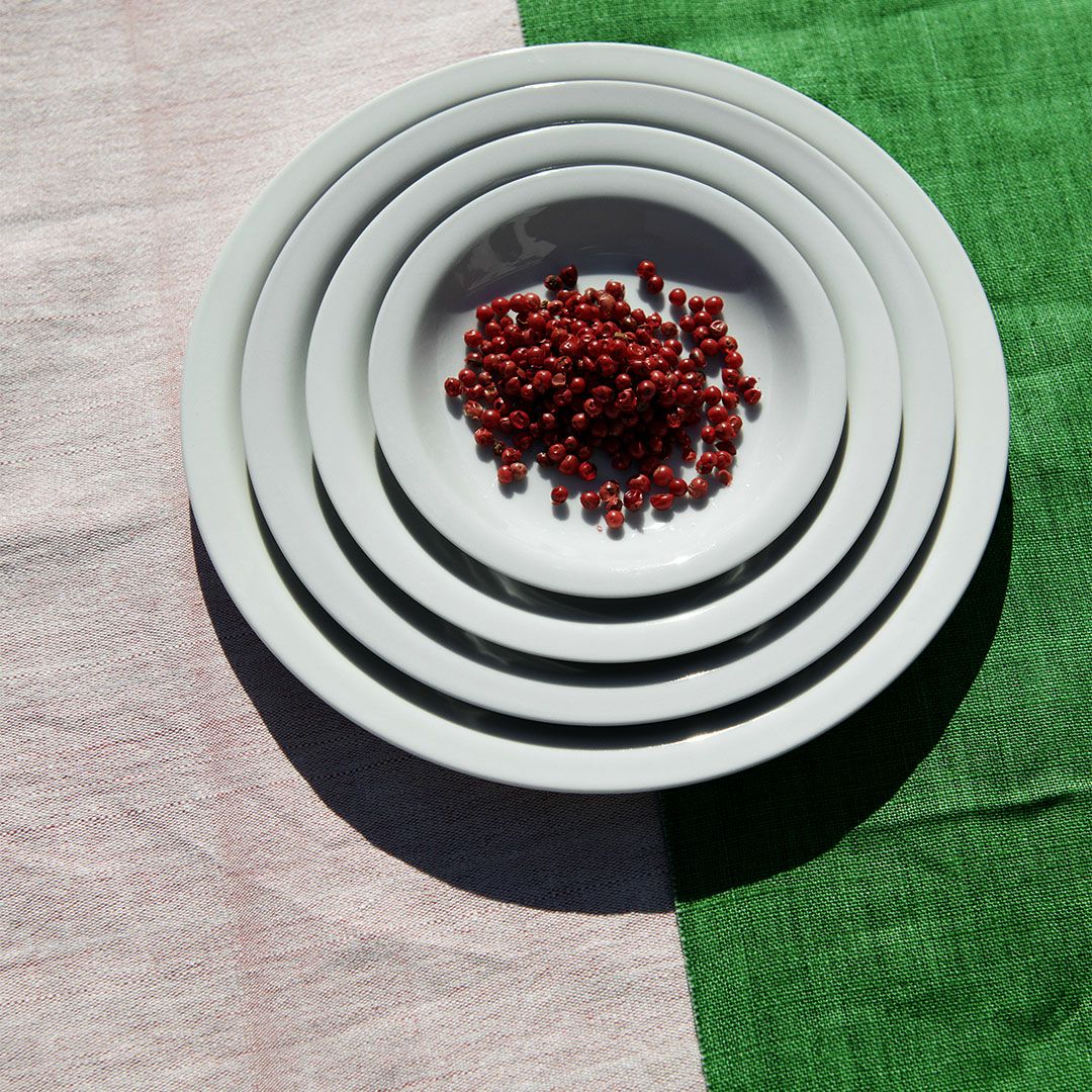 こちらは、緩やかなリムが特徴のソフトフラットシリーズ。なめらかな曲線が手に心地よく、料理を美しく引き立てます。