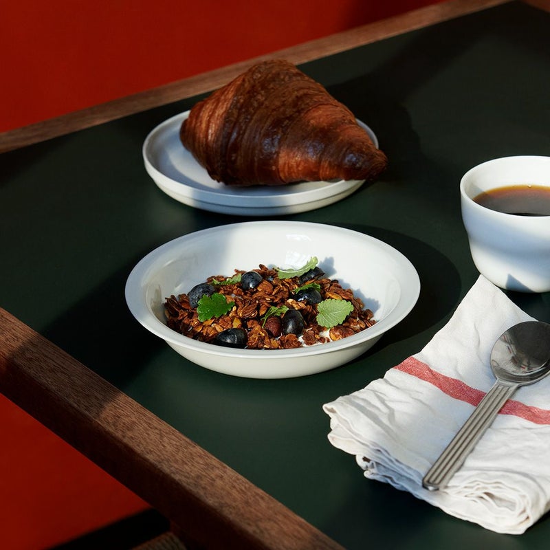 1616/arita japanから4つ目となる新コレクション、デンマーク人デザイナーのセシリエ・マンツによるシリーズです。 “CLAY”をテーマに掲げ、器の原点ともいえる「土」に着目して作られました。伝統的な有田焼の白磁を全面に押し出した「White」と、これまで使われることのなかった鉄分を含んだ土を使用した「Earth Grey」の2つのカラーで構成されています。