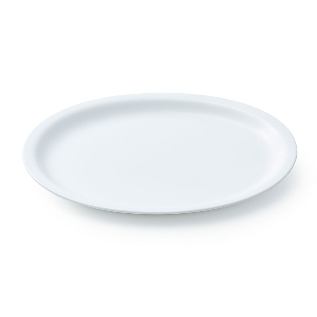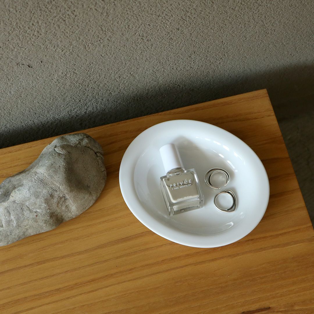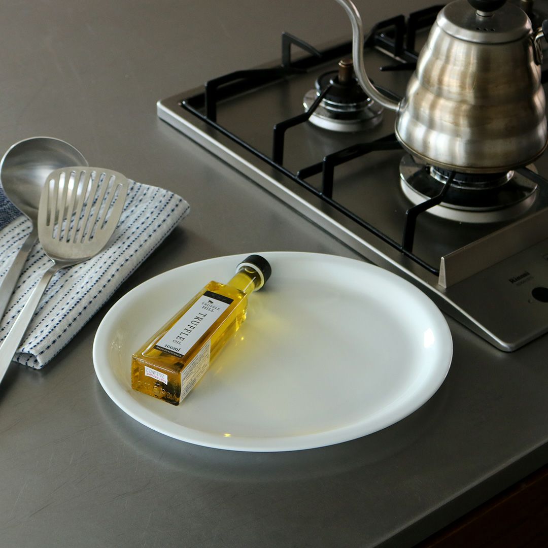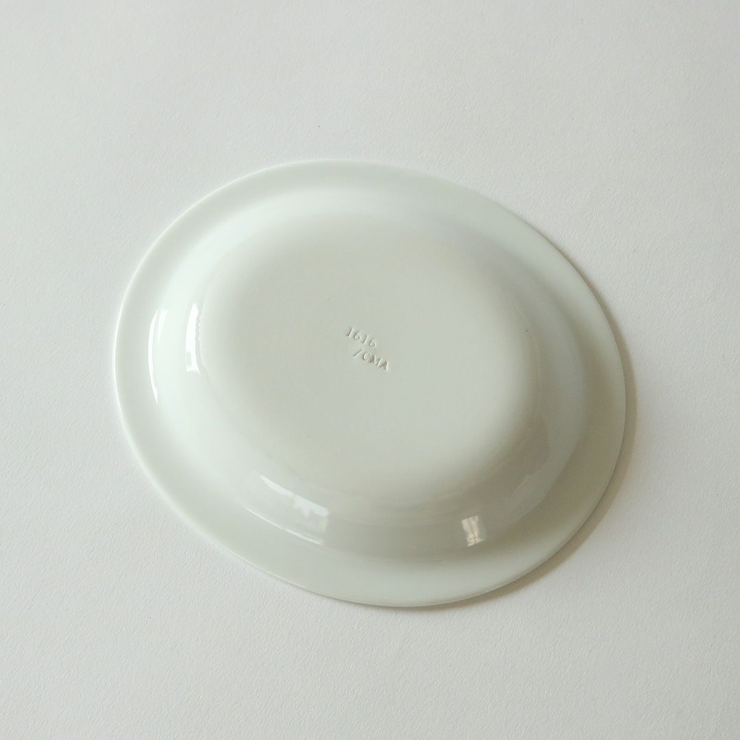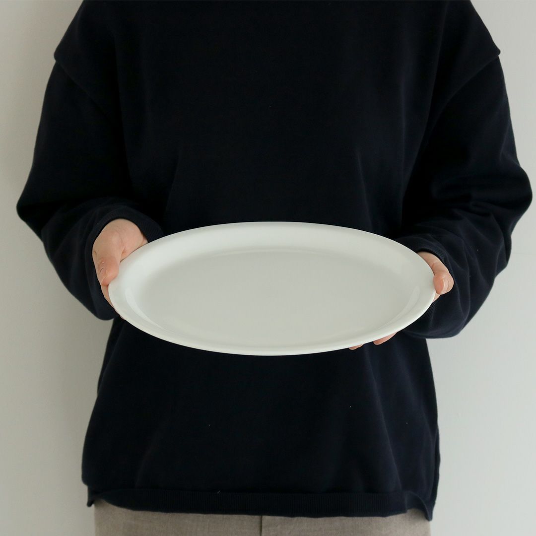 こちらは滑らかな曲線が美しい、オーバルタイプのフラットプレート。透き通るような白がどんな料理も引き立てます。普段使いしやすい3種類と、高台付きの35cmの特別なプレートの4種展開です。