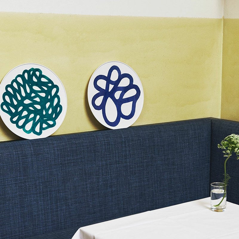 大きなプレートには、ピエール・シャルパンの“アラベスク”のドローイングが中央に絵付けされています。